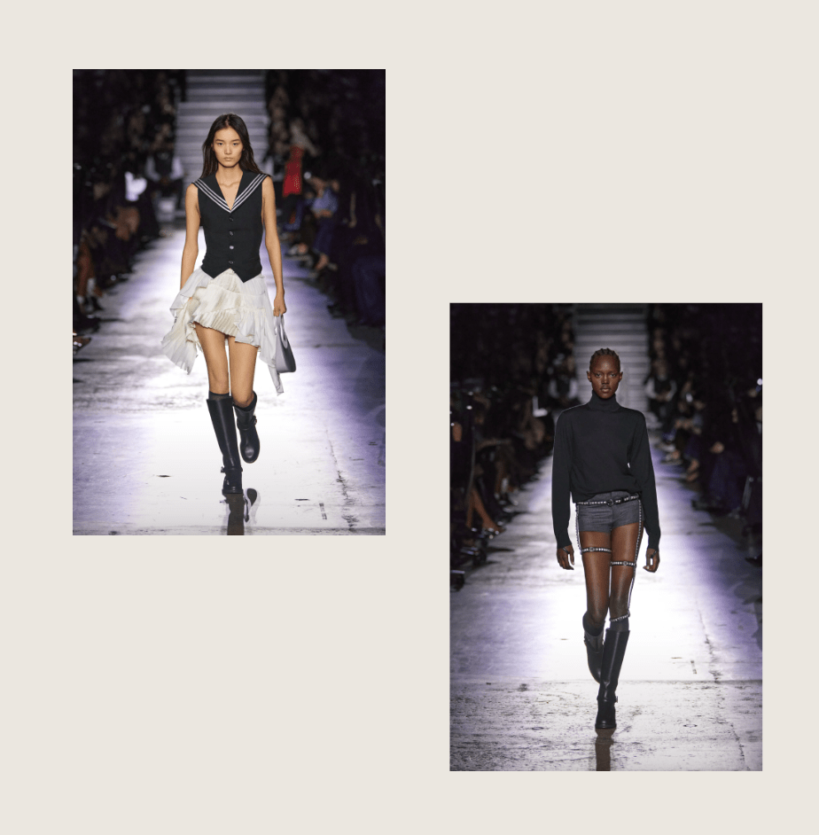 Coperni is intrinsically a technological brand, but they want to show that it can coexist with artistry. According to Vogue, creative directors Sebastien Meyer and Arnaud Valliant “wanted to reflect the human side of gaming as well as the feminine side.” They did precisely that. Each look felt like a realized vessel of a character, not in duplicity but in humanity. Not to mention, the collection is also highly wearable/sellable. The pieces can be easily styled, are incredibly flattering, and are uniquely functional (see the pouches on many of the looks with tights).