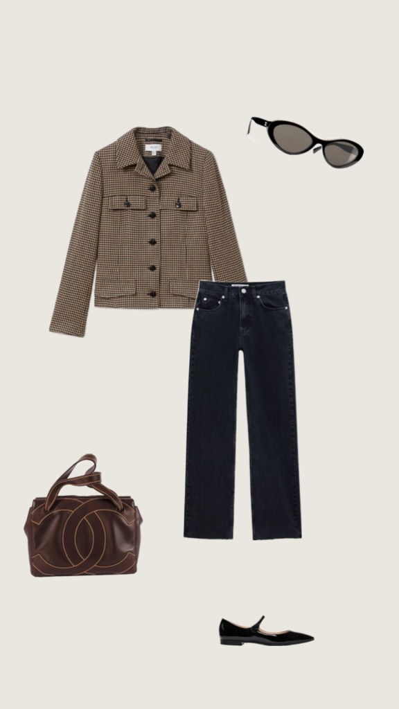 Jacket: Reiss Lena Black/Camel Dogtooth Check Collared Jacket, Pants: Jacquemus