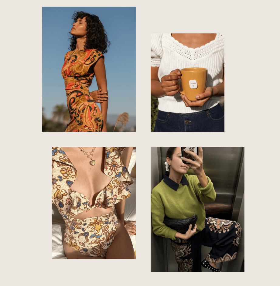 “Founded in 2013 by Morgane Sézalory, Sézane is the first French fashion brand born online. Above all, Sézane is guided by a passion to create beautiful pieces without intermediaries, allowing us to prioritize quality while maintaining fair prices. No overproduction, no sales and no unsold stock. Instead, we release our archives twice a year, ensuring nothing goes unworn.” This brand is beautiful. It feels enchanting just to scroll on their website honestly. Sézane also seems to have many dimensions… parisian, african, southern, hippie, south asian, english… and they are still quite seamlessly cohesive. The photos I offered barely do their color palette any justice but I prioritized representing the productive diversity of the brand.