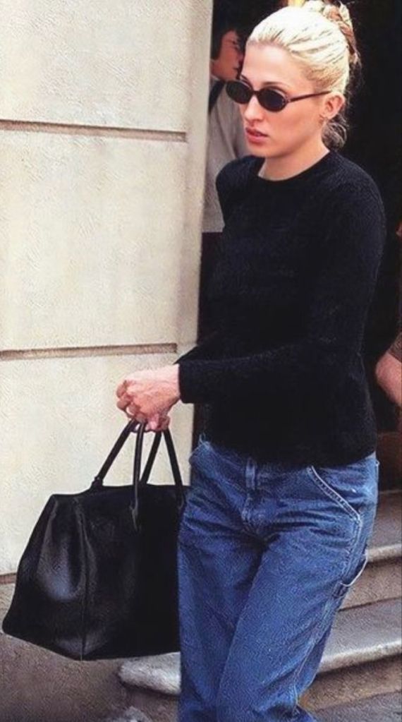 A minimum of jewellery. One of the most memorable features of Carolyn Bessette-Kennedy’s style was either a complete absence of jewellery or a minimal amount of it. Apart from her wedding ring, which was often discussed for its simplicity, she might complement her look with a string of pearls. Despite this, there were two accessories that nearly invariably complemented Carolyn’s looks: a tortoiseshell headband from a french pharmacy called C. O. Bigelow in the west village of NYC and oval sunglasses called Aldo by Selima Optique (the brand later named one of its models Carolyn in her honour).