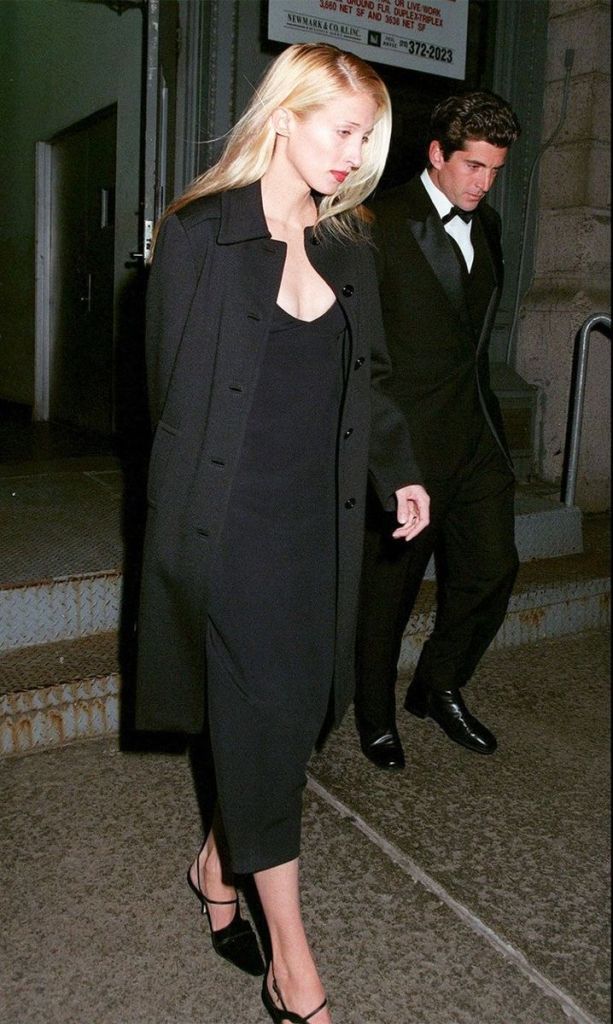 Black dress. In an attempt to avoid media attention, Carolyn Bessette-Kennedy was often seen wearing the same little black dress at various events, including The 1999 Fire & Ice Ball in Los Angeles and Earlier NYC charity functions. She styled her hair differently and changed her shoes and outerwear, but the dress itself remained the same. According to media speculation, the dress is believed to be either Narciso Rodriguez or Calvin Klein, both labels she wore frequently. She hoped that this would bore the paparazzi and they would leave her alone, but this gesture had the opposite effect and only added iconicity and significance to Carolyn Bessette-Kennedy’s image in the fashion world. This dress can also be seen as a sign of protest against her husband, John F. Kennedy Jr. In JFK Jr.: An Intimate Oral Biography, authors Liz McNeill and Rosemary Terrencio mention that he hated the colour black, especially for this dress, and always asked Carolyn not to wear it. However, as we can see, he was unable to overcome his wife’s rebellious spirit. No matter what happened in Carolyn Bessette Kennedy’s life, her appearance reflected who she was and could not be manipulated.